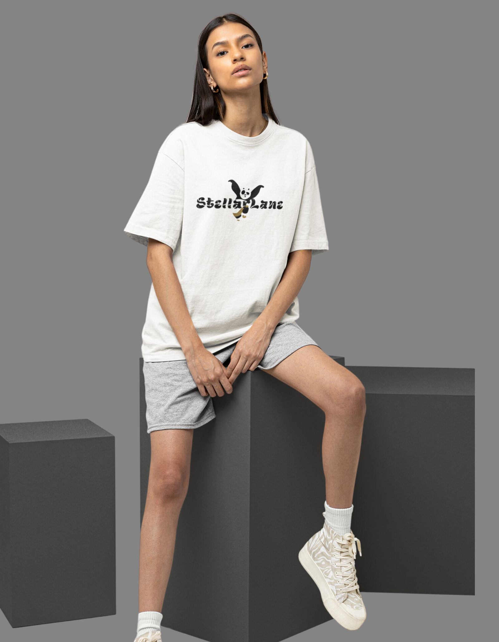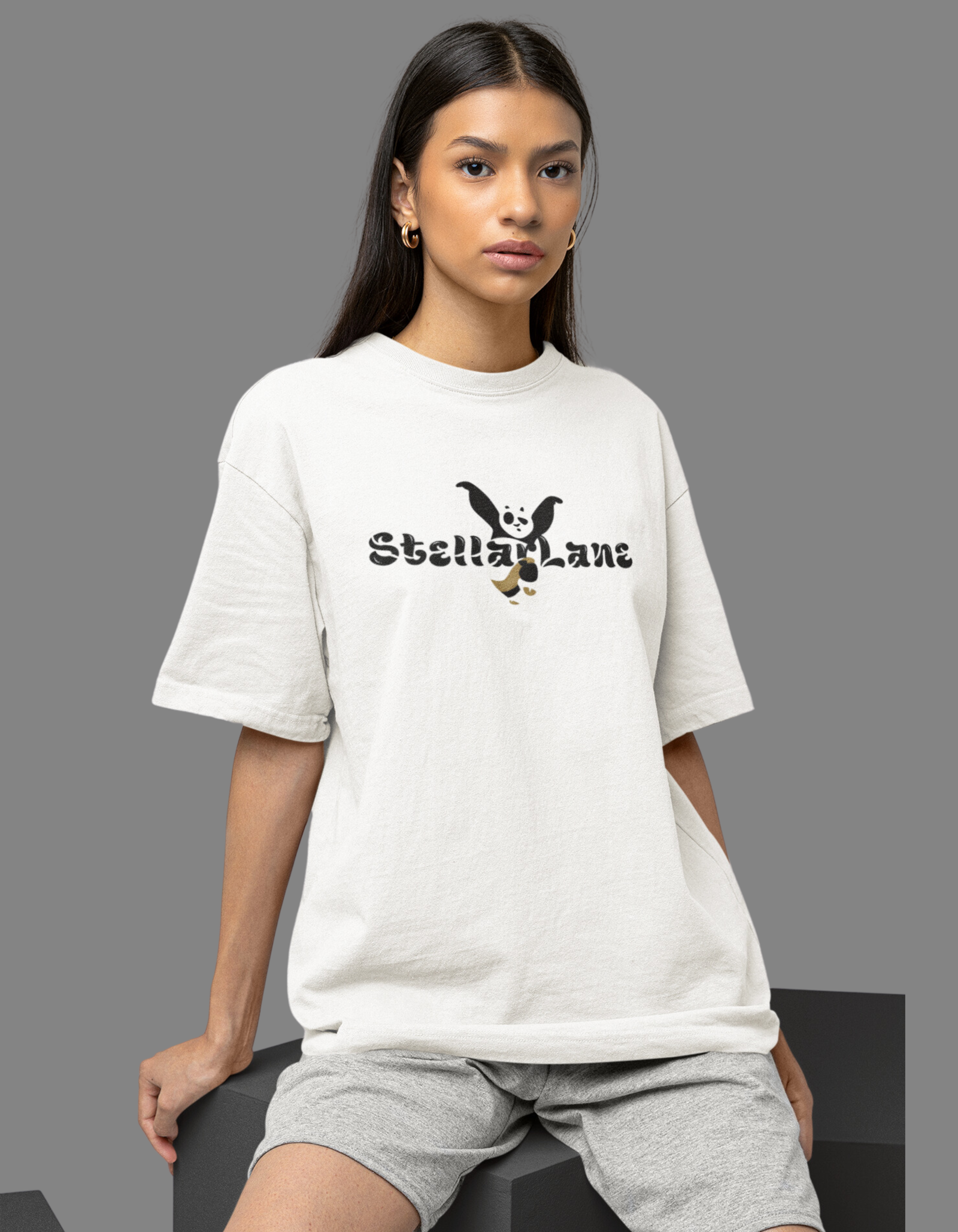 Elevate your everyday look with the effortlessly cool “Groovy Panda No Chill Terry Oversized T-Shirt” Showcasing a dynamic dancing panda graphic across the back, this oversized tee exudes playful confidence. The iconic “Stellarlane” signature subtly adorns the front, adding a touch of understated sophistication. Whether you’re enjoying a night out with friends or simply unwinding at home, this T-shirt effortlessly captures your carefree spirit and undeniable energy.